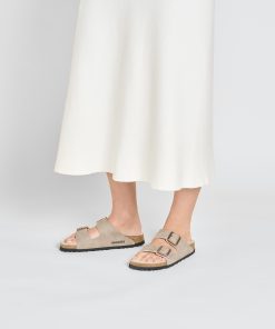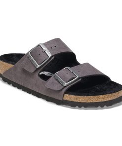 Birkenstock Women’s Sandals Arizona Shearling Synthetics Desert Dust Black | Desert Dust Black