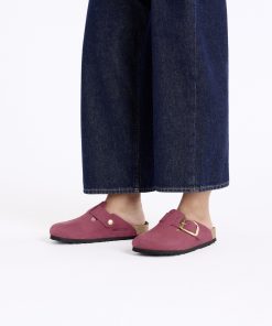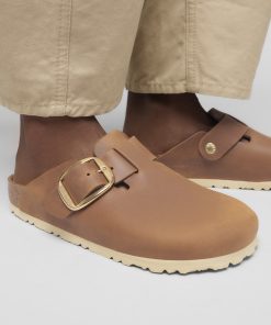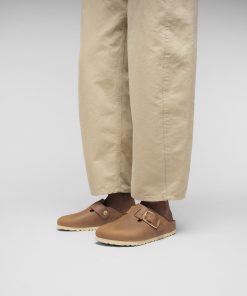 Birkenstock Women’s Shoes Boston Big Buckle Leather Oyster Dressy Leather | Oyster Dressy Leather