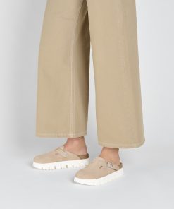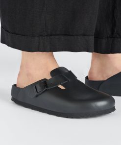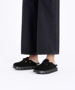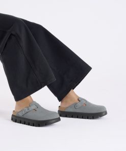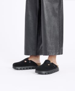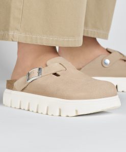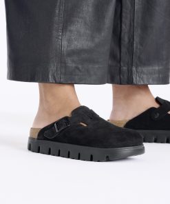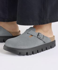 Birkenstock Women’s Shoes Boston Chunky Suede Leather Basalt Gray/ Black | Basalt Gray & Black