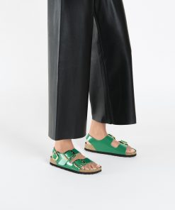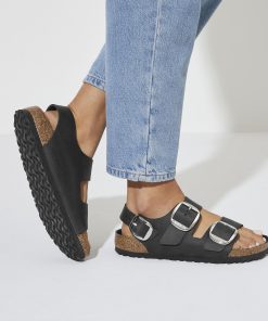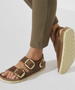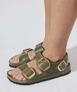 Birkenstock Women’s Sandals Milano Big Buckle Oiled Leather Olive Green | Olive Green
