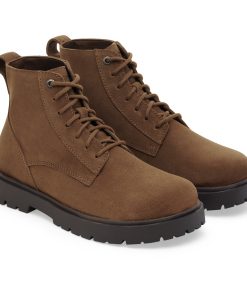 With the Highwood, BIRKENSTOCK presents an understated, mid-calf Chelsea boot that’s instantly recognizable as an authentic BIRKENSTOCK original thanks to the cork elements in the sole. Thanks to the lacing, it offers maximum support and adjustability. The comfortable and light Deep Blue Footbed makes the shoe a perfect 24/7 all-rounder, especially on long and active days. Perfect for your next holiday, extensive walks, or city trips. This version features a high-quality rubber outsole with a stud pattern for excellent traction. Biomechanically positioned elements promote a natural movement and ensure maximum comfort when walking. The upper is made from especially soft suede which hugs the foot like a second skin.