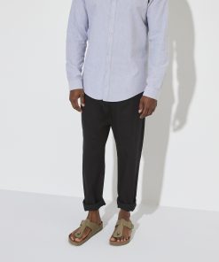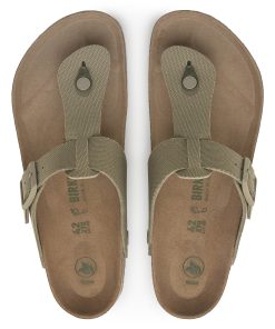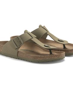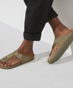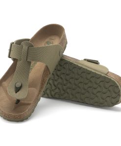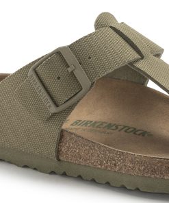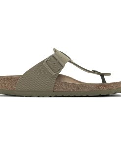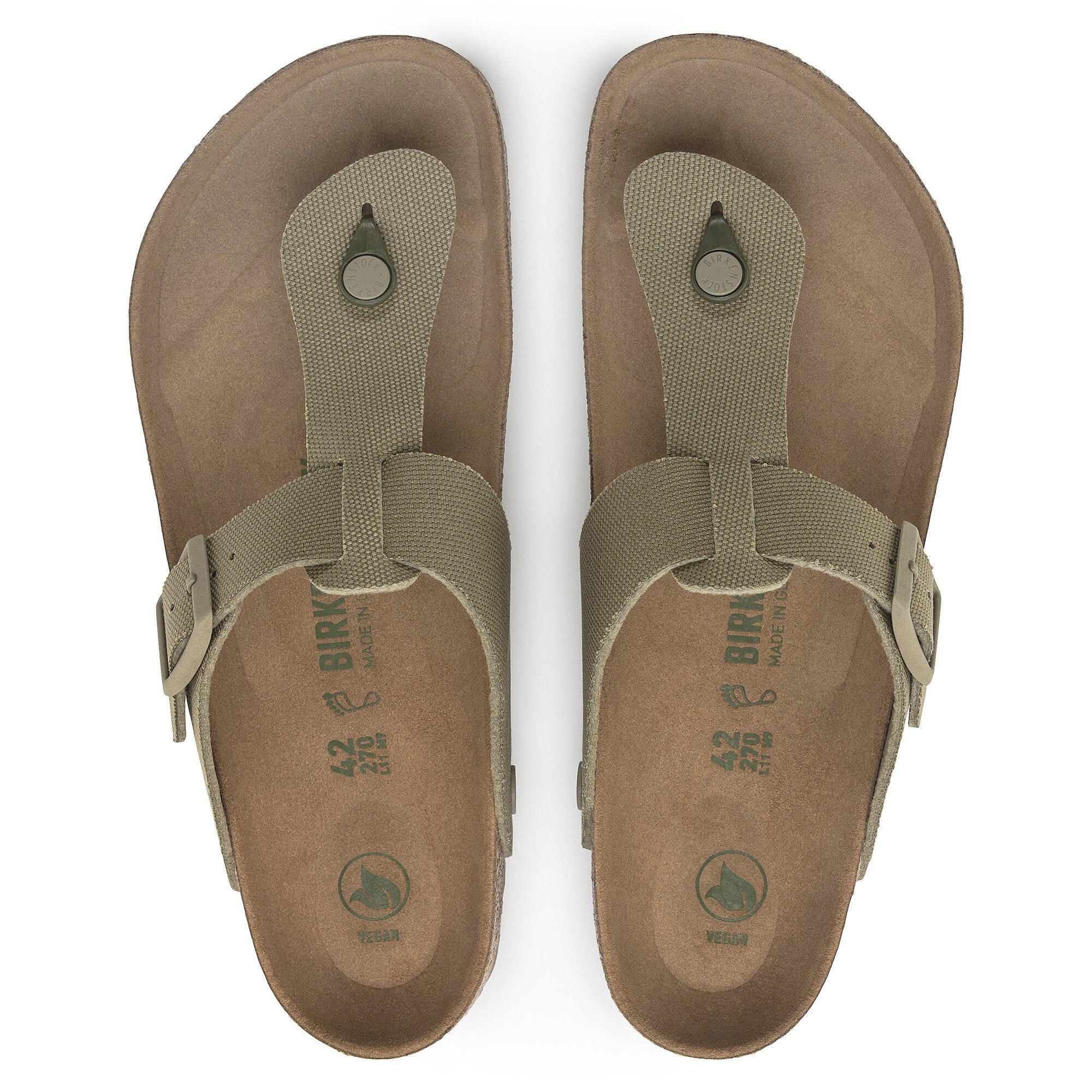 The BIRKENSTOCK Medina – a modern thong sandal. The bold straps and side buckle, combine for a fully adjustable fit on the instep. This classic model is now available in a vegan material, featuring a matte finish and a microfiber footbed liner. The upper is made of canvas textile.