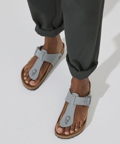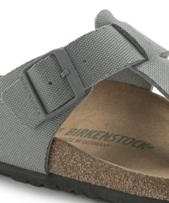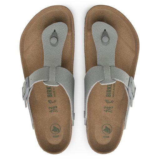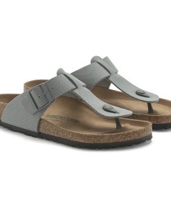 The BIRKENSTOCK Medina – a modern thong sandal. The bold straps and side buckle, combine for a fully adjustable fit on the instep. This classic model is now available in a vegan material, featuring a matte finish and a microfiber footbed liner. The upper is made of canvas textile.