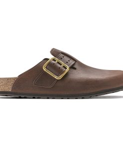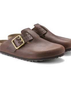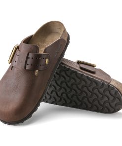 The signature slip-on clog from BIRKENSTOCK – the Boston. A casual-wear staple that is perfect all year round with a simple, adjustable design and contoured cork footbed that forms to the shape of your foot. This modern version of our iconic Boston clog features a double prong brass tonal buckle and a high traction rubber outsole. The cushioning midsole made from EVA promotes stability and comfort. Made of premium leather with edge embossing