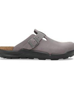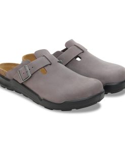 The BIRKENSTOCK Boston is a veritable classic that can easily be worn all year round. It has a legendary status thanks to its sophisticated, individually adjustable design. The sporty Adventure Crosstown version is designed for BIRKENSTOCK fans who are active and looking for an experience. The polyurethane sole is affixed to the footbed in two layers and therefore offers maximum flexibility, grip, and durability. The upper is made from extra thick, oiled nubuck leather with an open-selvage finish.