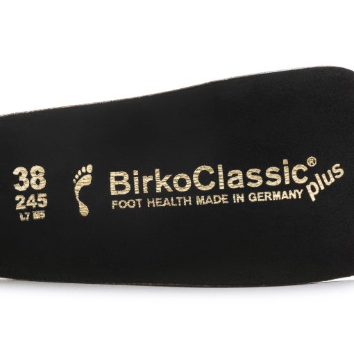 The classic shape of our Blue Footbed utilizes the principle of walking barefoot. It is based on the impression left by a healthy foot in sand, creating a natural environment for your feet. The heel area is cushioned and stabilized thanks to the raised design. This also supports the natural arch of the foot. The Blue Footbed is therefore ideal for anyone who would like to enjoy the unique comfort of BIRKENSTOCK in enclosed shoes made by other brands too.