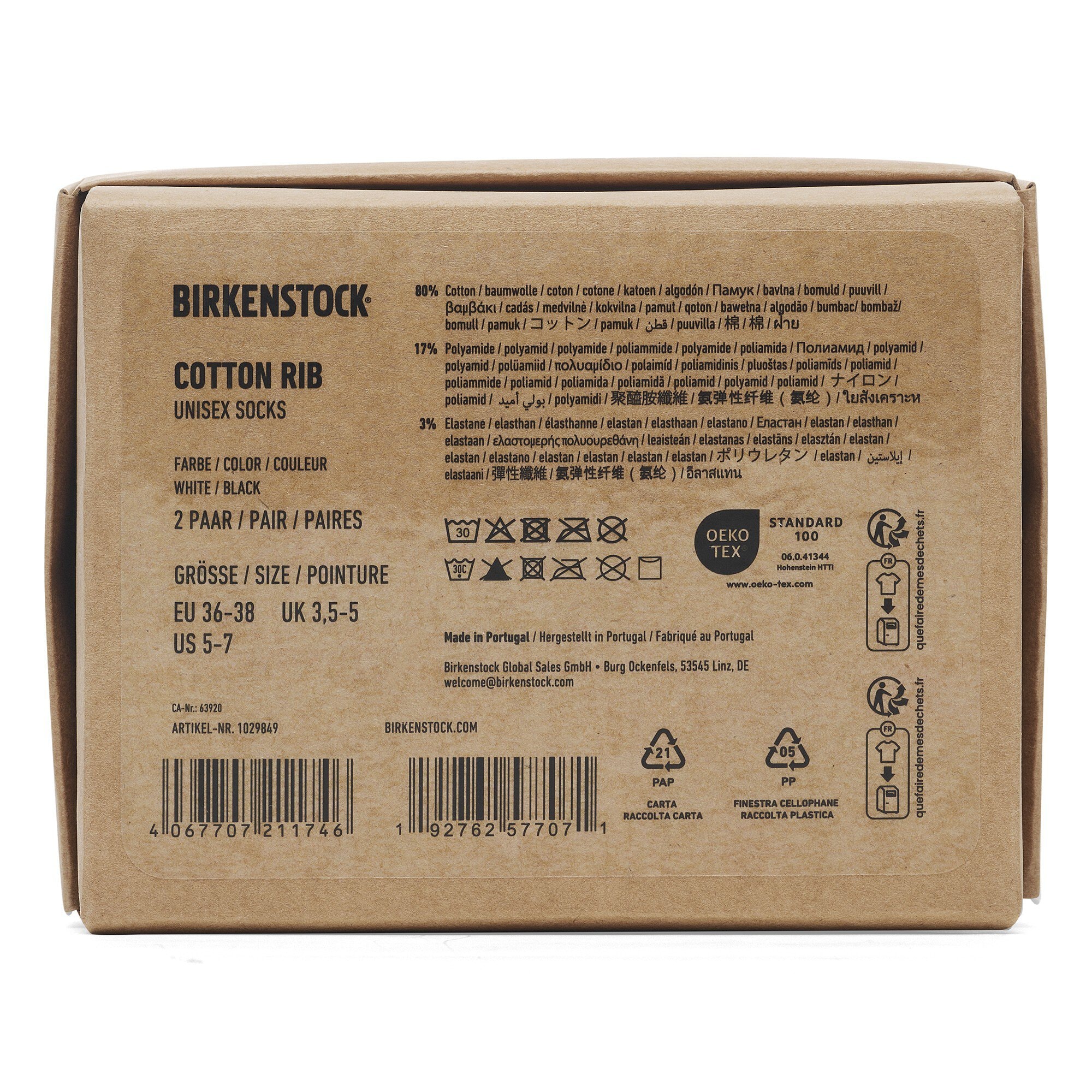 This set consists of two pairs of BIRKENSTOCK Cotton Ribbed socks. The ribbed structure prevents them from slipping down and makes them fit perfectly. The iconic Arizona sandal is embroidered on the outside. The pressure-free, elasticated cuff guarantees maximum comfort.