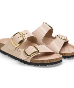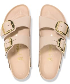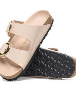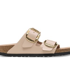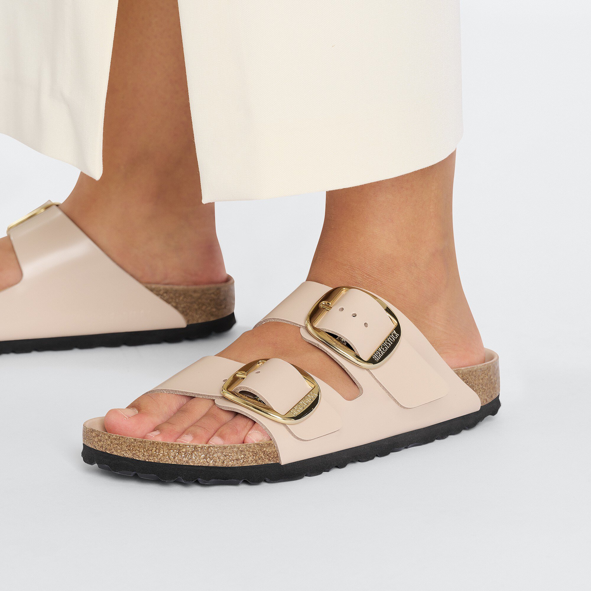 The legendary two-strap design from BIRKENSTOCK with amplified buckle accent – the Arizona Big Buckle. The Big Buckle version features a large, elegant buckle creating a bold yet minimalist design. The semi-exquisite footbed is fully lined with soft piumato leather, making it exceptionally comfortable. The upper is made from high-quality natural leather with a high shine finish.