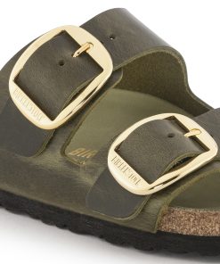 Birkenstock Women’s Sandals Arizona Big Buckle Oiled Leather Olive Green | Olive Green