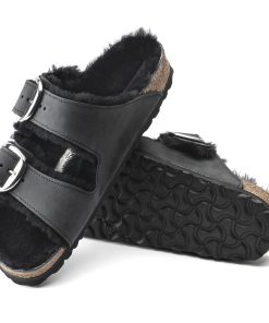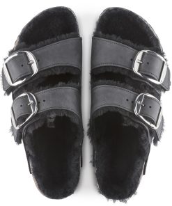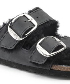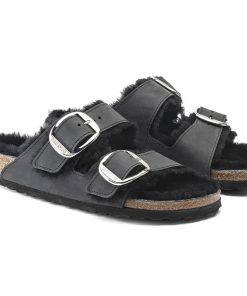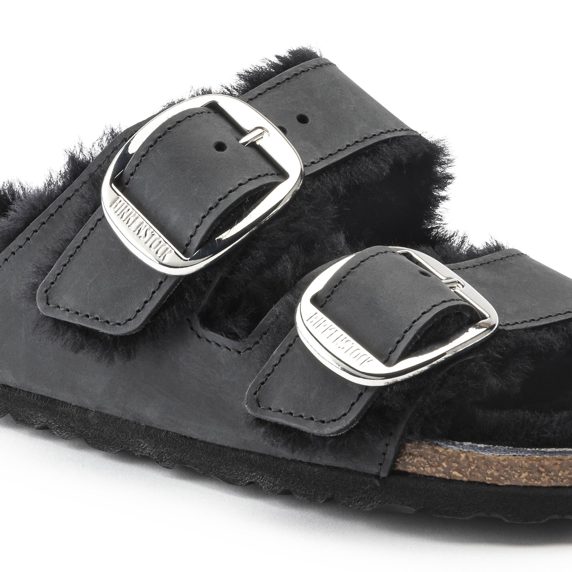 Birkenstock Women’s Sandals Arizona Big Buckle Shearling Oiled Leather Black | Black