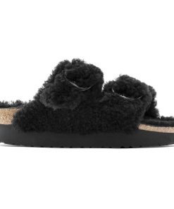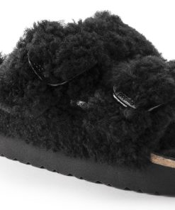 The iconic Arizona two strap sandal, now available in all over teddy shearling. Extra cozy, extra comfortable with amplified big buckles for a bold style.