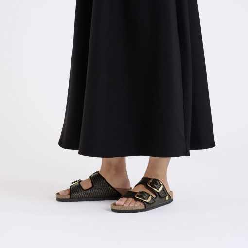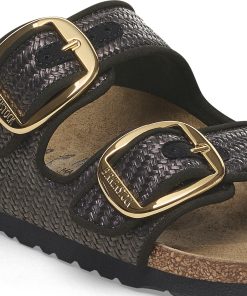 Have texture, will travel. The Arizona sandal brings on the breeze in summer-ready raffia. Offset with big buckles, this pair is polished enough for any occasion. A contoured footbed helps keep you comfortable long after the sun goes down.