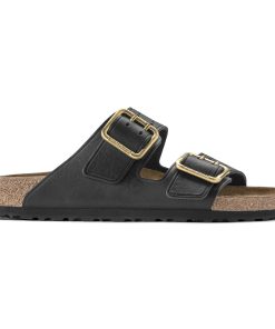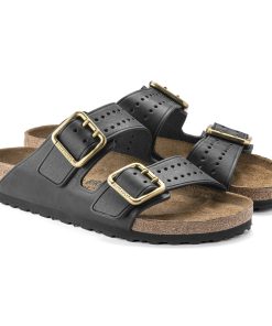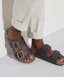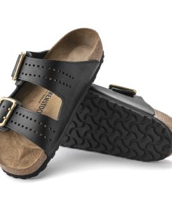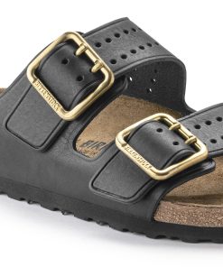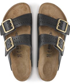 The legendary two-strap design from BIRKENSTOCK – the Arizona. Iconic style with the signature comfort of the BIRKENSTOCK footbed. This modern version of our classic Arizona features a double prong brass tonal buckle and a high traction rubber outsole. The cushioning midsole made from EVA promotes stability and comfort. Made of premium leather with edge embossing