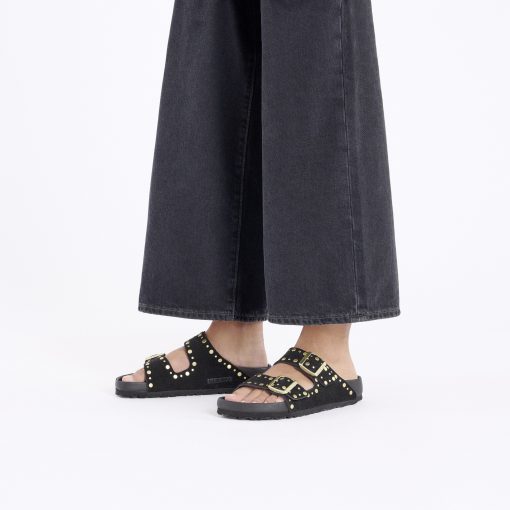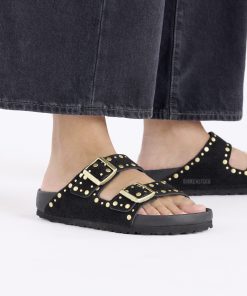 Birkenstock Women’s Sandals Arizona Rivets Suede Leather Black | Black