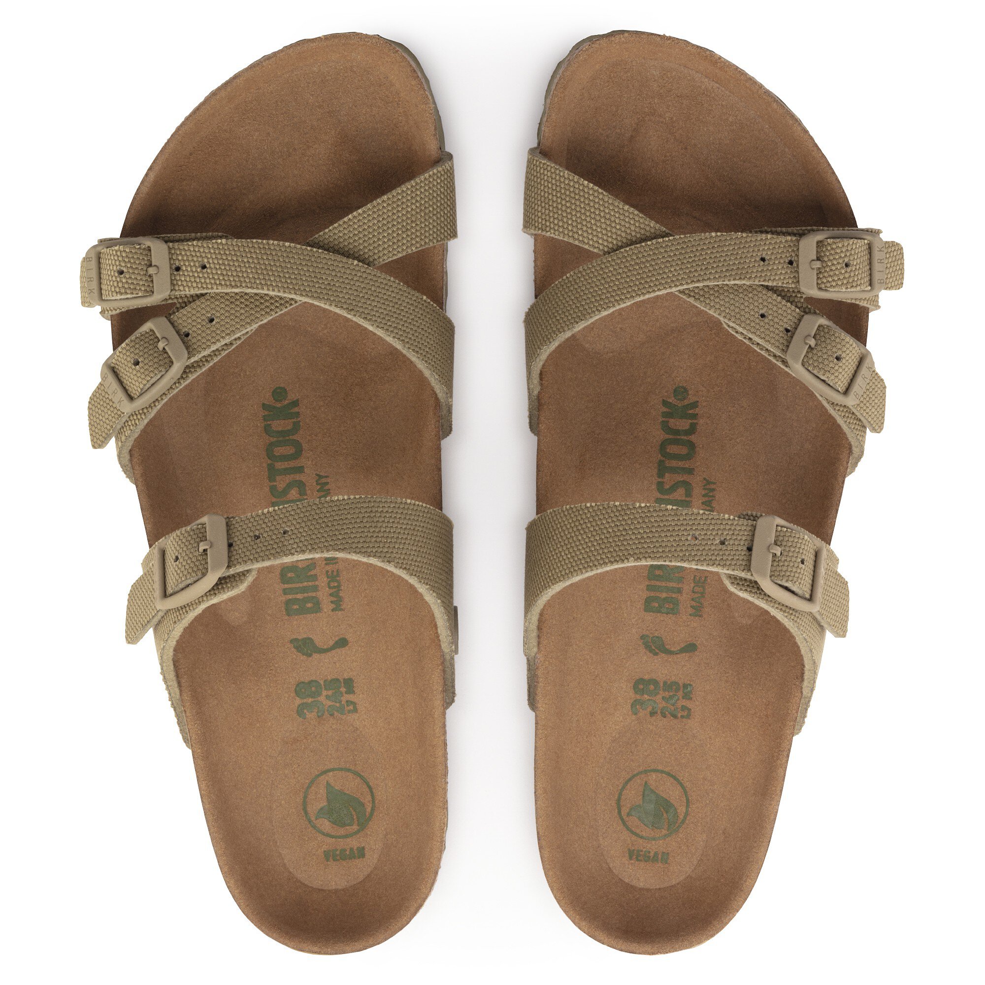 Slim, crisscross straps with the comfort to match. The Franca’s strappy, style-forward design goes vegan with a 100% natural cotton canvas upper, giving you a lighter look for warmer months. Tonal details, from the embossed buckles to its EVA sole, elevate the look. The style stays grounded in an original BIRKENSTOCK footbed, designed to shape to you for custom support.