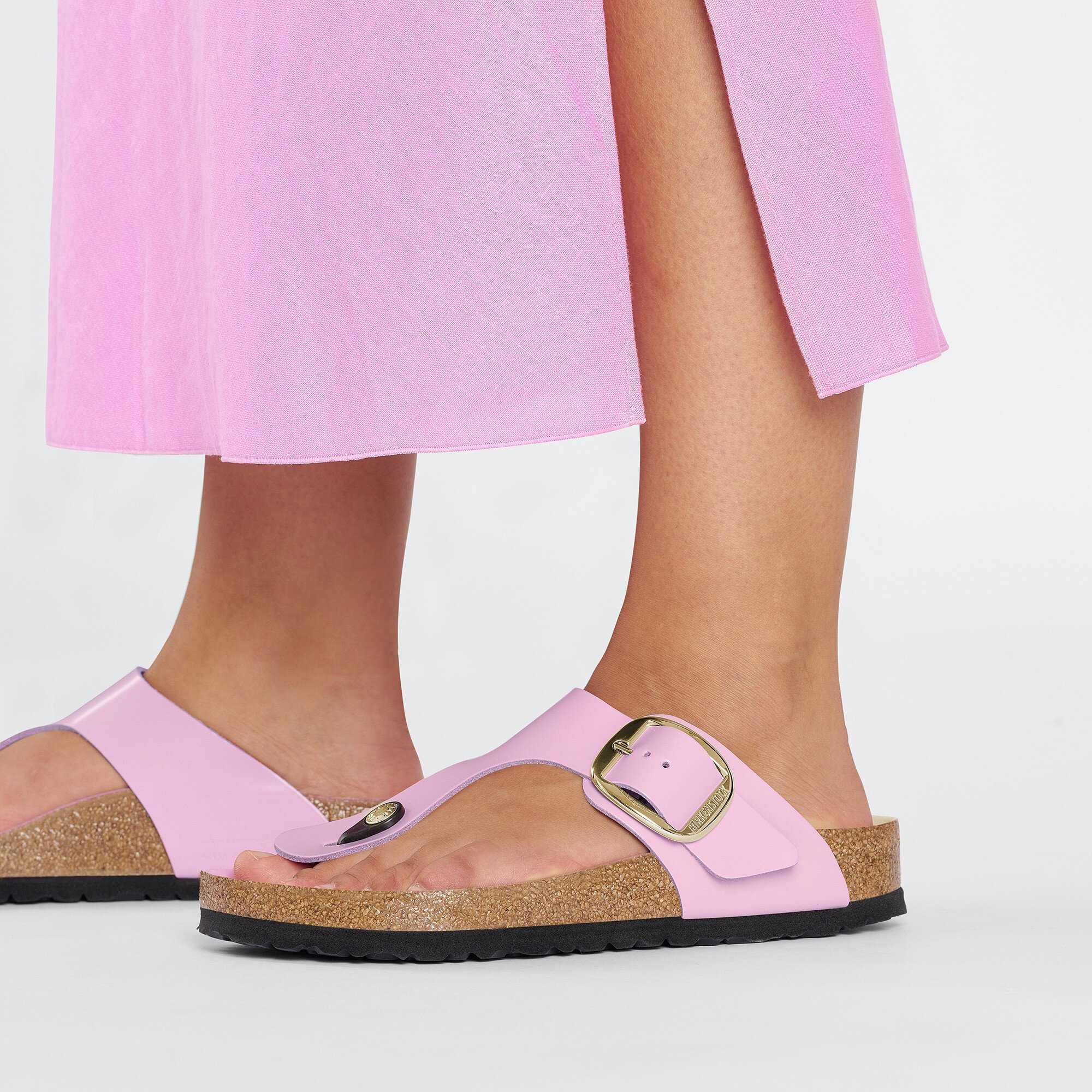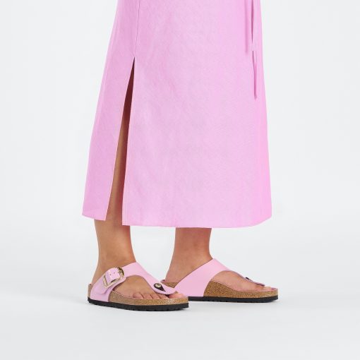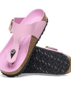 The Gizeh sandal refines the fit with legendary comfort and elegant detailing. This design doubles the buckle and ups the shine with gleaming, oversized hardware and a glossy finish. The style is grounded in our original contoured footbed, designed to shape to you for the ultimate in custom support.