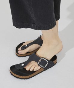The modern thong sandal from Birkenstock. The Gizeh is an iconic classic with signature support and a refined, minimalist style. The Big Buckle version features an oversized buckle and tonal footbed lining. The upper is a soft yet durable oiled leather.