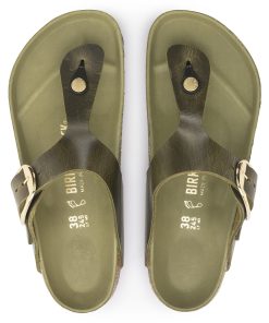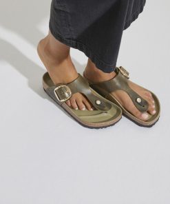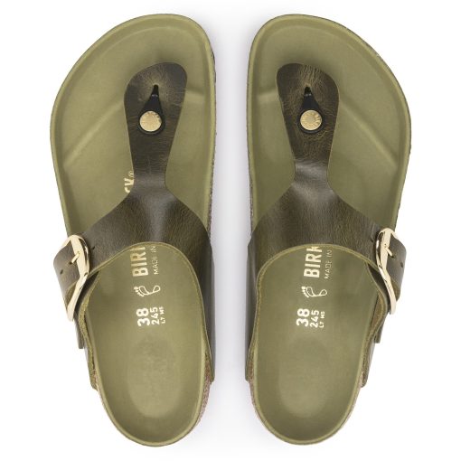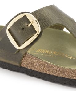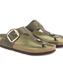 Birkenstock Women’s Sandals Gizeh Big Buckle Oiled Leather Olive Green | Olive Green