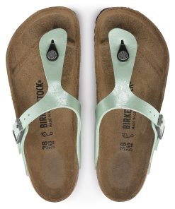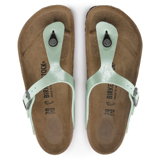 The BIRKENSTOCK Gizeh brings legendary comfort and elegant detailing to the thong sandal. A statement finish adds a special sheen to the everyday favorite. Complete with an original cork-latex footbed for all-day support.