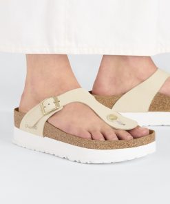 Birkenstock Women’s Sandals Gizeh Flex Platform Nubuck Leather Ecru | Ecru