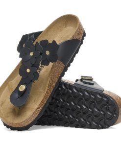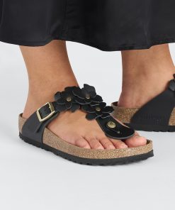 Birkenstock Women’s Sandals Gizeh Flower Leather Black | Black