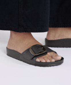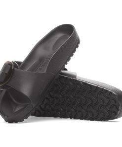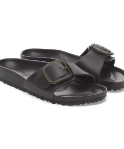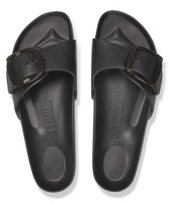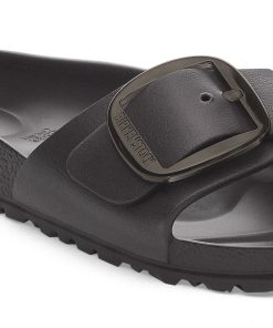 This is a new and modern interpretation of the BIRKENSTOCK classic Madrid. This version features our popular Big Buckle made from a stainless synthetic material and makes an impression with its durability and minimalist design. Modeled on the cork sandal, it is made from the ultra-lightweight and highly flexible synthetic material EVA. The high-quality, odor-neutral EVA has been tested for harmful substances and combines numerous positive attributes: it is very light, highly elastic, shock-absorbent, water-resistant, and skin-friendly.