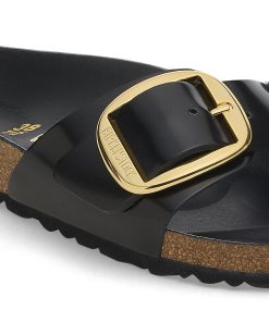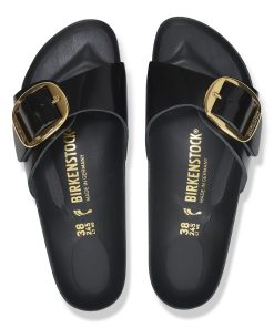 Birkenstock Women’s Sandals Madrid Big Buckle Natural Leather Patent High Shine Black | High Shine Black