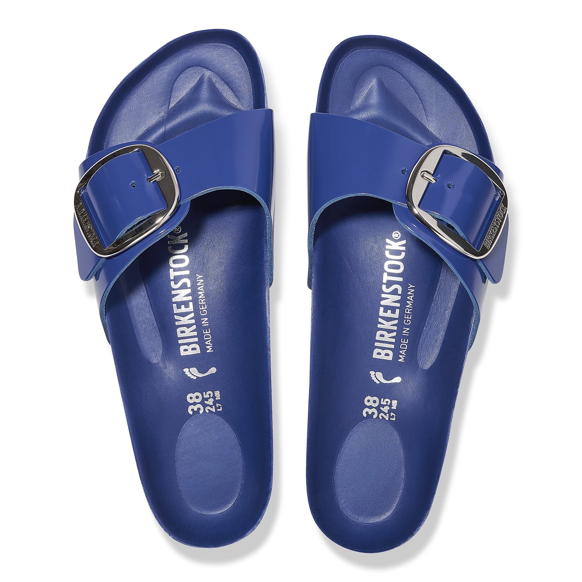 Birkenstock Women’s Sandals Madrid Big Buckle Natural Leather Patent High-shine Cobalt | High-shine Cobalt