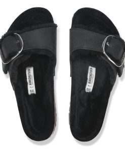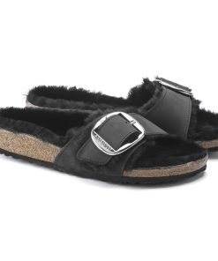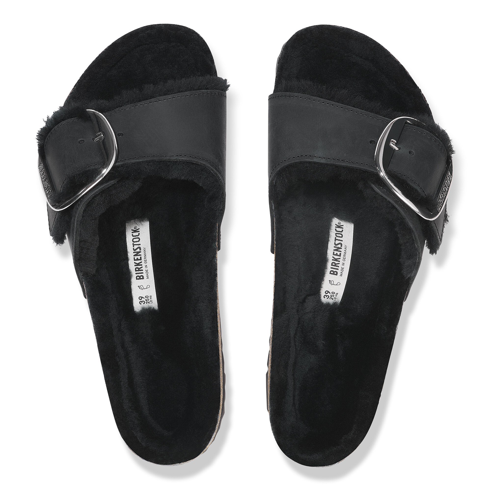 A strap, a buckle and a contoured cork footbed are masterfully combined to create the original Birkenstock sandal – the Madrid. This version is incredibly cozy featuring a color-coordinated genuine shearling lining, shearling lined straps and a big, elegant pin buckle. The upper is a soft yet durable oiled leather.