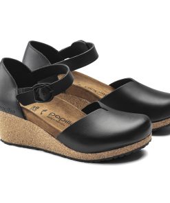 The Mary is a closed-toe wedge from Papillio. Featuring a comfortable, lightweight footbed, and a subtle v-notch on the instep for added ease while walking. The delicate circular buckles are an elegant eye-catcher to dress up any outfit. The upper is made from high-quality, soft natural leather.