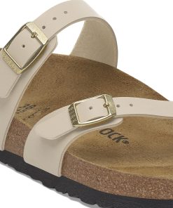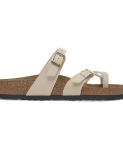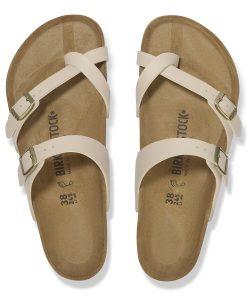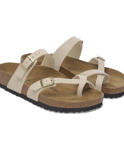 The Mayari from BIRKENSTOCK – an elegantly comfortable sandal with adjustable, crisscrossing straps that form a single loop around the toe. Classic support and adjustability, designed beautifully. Shown in Birko-Flor®.