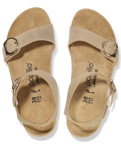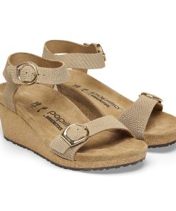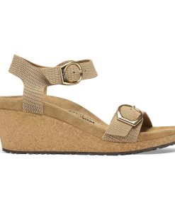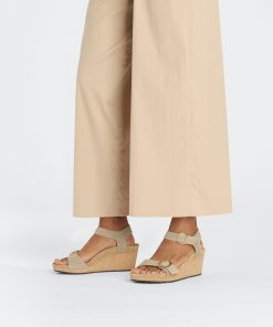 The Soley brings the contoured comforts of the BIRKENSTOCK® footbed together with a cork wedge—designed to level up without adding pressure to the front of your foot. Embossed nubuck leather elevates the details along with elegant, rounded buckles. Level up in comfort.