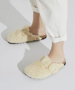 Birkenstock Women’s Shoes Boston Big Buckle Shearling Teddy Eggshell | Teddy Eggshell