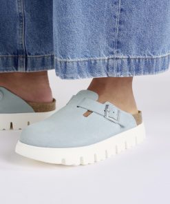 The Boston clog, made cozy for the colder months. Classic suede lends a velvety feel that continues on the inside. The style is fully lined in genuine shearling, right down to the original contoured footbed. A soft, supportive landing every time.