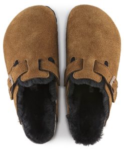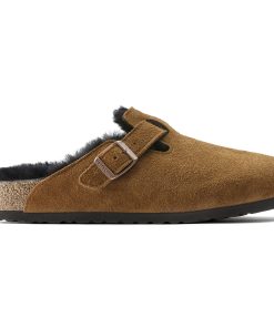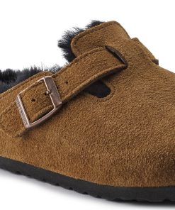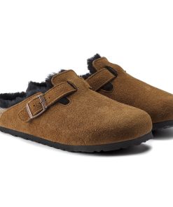 The signature slip-on clog from BIRKENSTOCK – the Boston. A casual-wear staple that is perfect all year round with a simple, adjustable design and contoured cork footbed that forms to the shape of your foot. Here, the classic model comes in a particularly cozy version with soft shearling lining. The perfect shoe for cozy winter evenings! The upper is made from soft suede.
