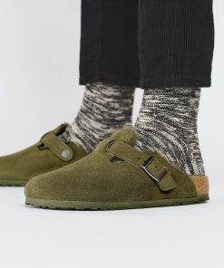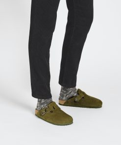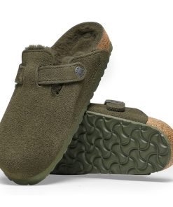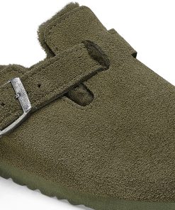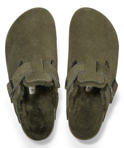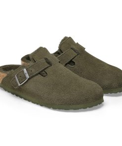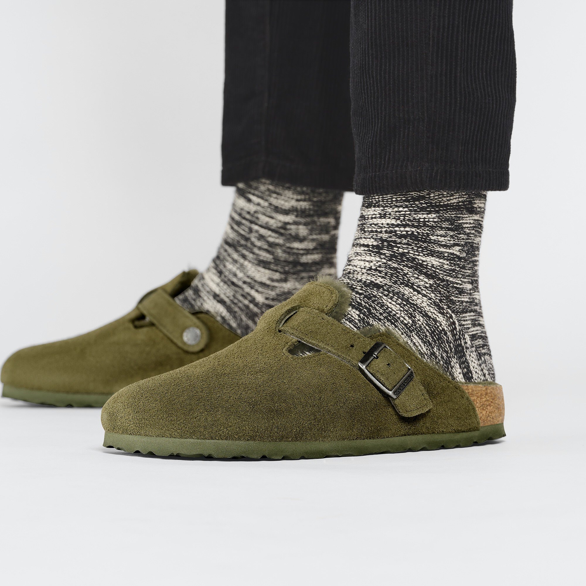 Birkenstock Women’s Shoes Boston Shearling Suede Leather Thyme | Thyme