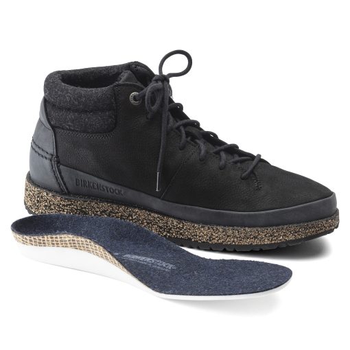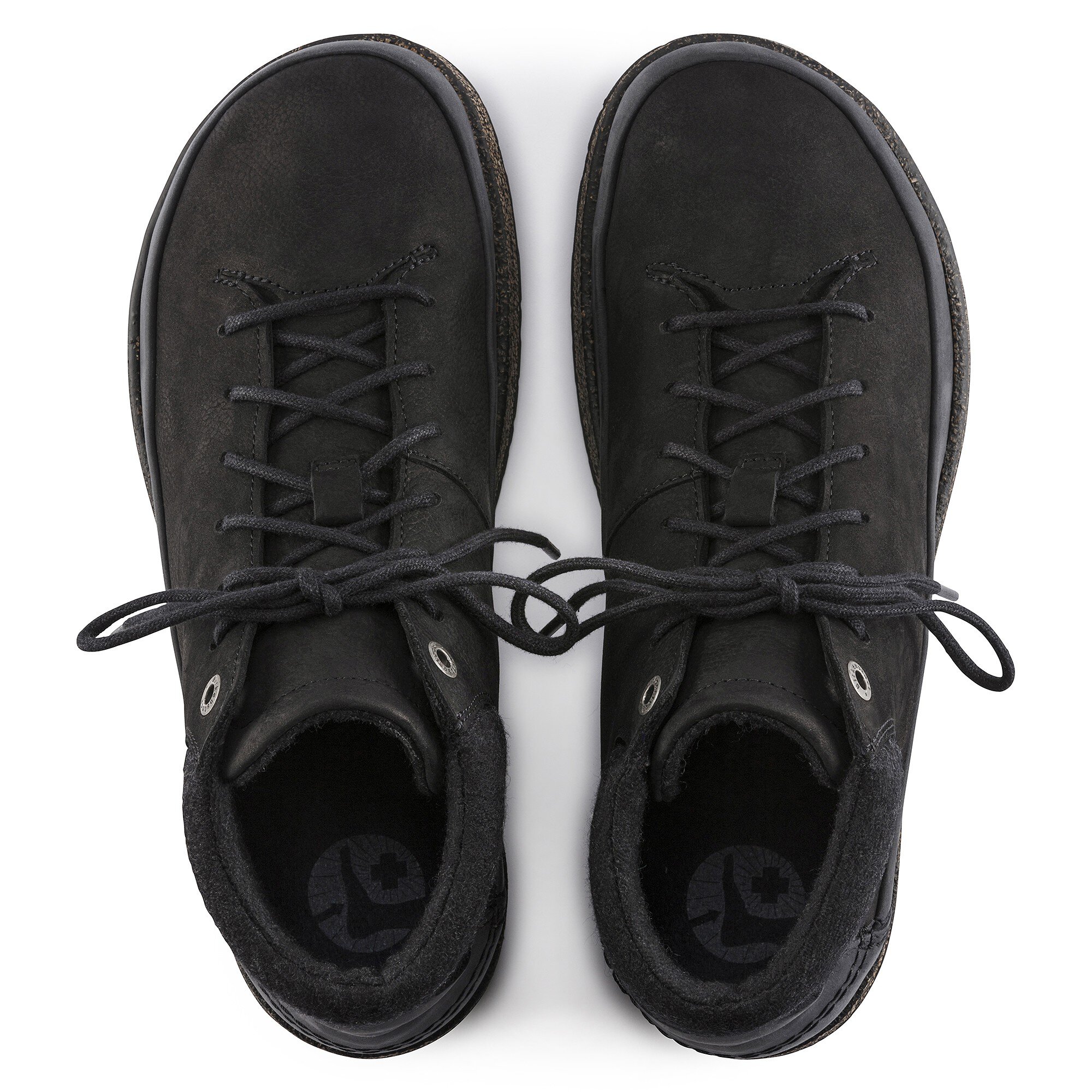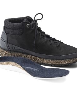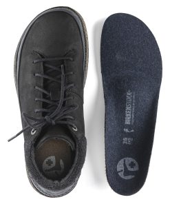 Presenting the BIRKENSTOCK Honnef High – our newest street smart ankle boot engineered completely around our new Deep Blue Footbed. The four part footbed includes a moisture wicking microfiber liner, cork and jute layers for optimum arch support and a PU base for added shock absorption and forefoot cushioning. The sporty lace up style is perfect for your most active days, whether that’s all day around town or on your next travel adventure, The oiled nubuck upper is durable and easy to clean, fully adjustable lacing for optimum fit, wool synthetic lining for internal temperature control and injected rubber outsole for added grip and durability.